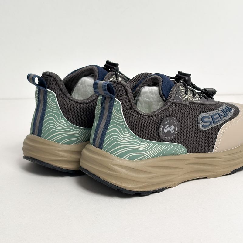 جزئیات از نمای نزدیک؛ آنچه در عکس میبینید و لمس خواهید کرد اولین چیزی که در این کتونی خودنمایی میکند، ترکیب هوشمندانه بافت مش و لایههای محافظ در قسمت پنجه است. رویه کفش ترکیبی از متریال تنفسپذیر است؛ این یعنی دیگر خبری از بوی بد پا بعد از چند ساعت فعالیت نیست. در قسمت کناری، برند SENMA با حالتی برجسته کار شده که به کفش هویت یک کالای باکیفیت و ترندی را میدهد.